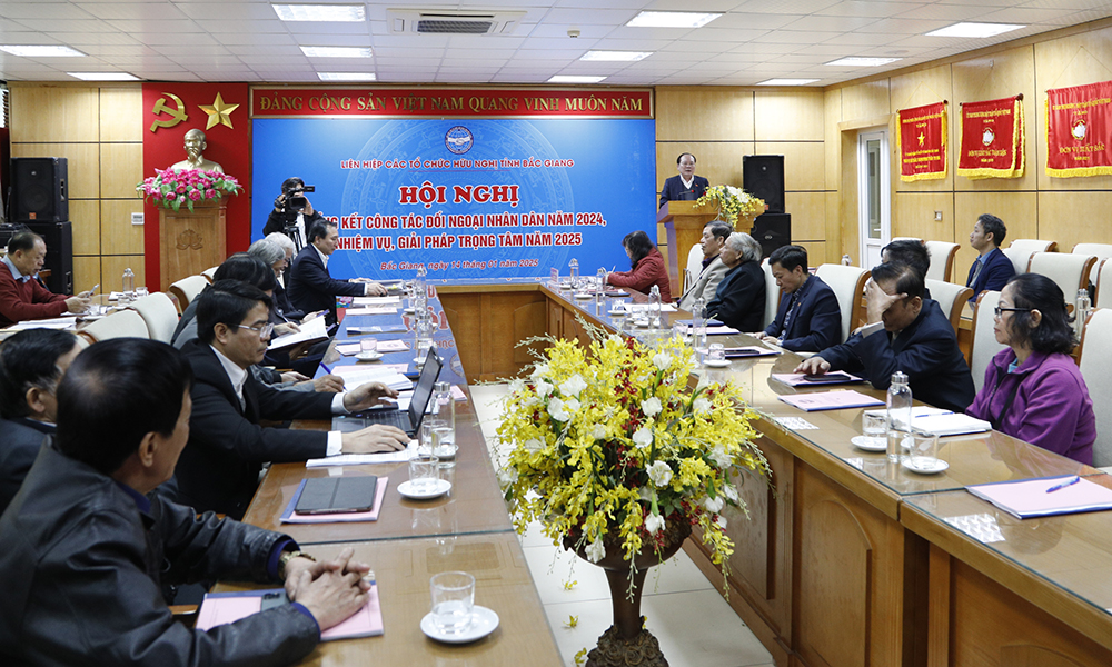 BẮC GIANG - Ngày 14/1, Liên hiệp Các tổ chức hữu nghị (CTCHN) tỉnh Bắc Giang tổ chức tổng kết công tác đối ngoại nhân dân năm 2024; triển khai nhiệm vụ, giải pháp trọng tâm năm 2025. Đồng chí Trần Công Thắng, Ủy viên BTV Tỉnh ủy, Chủ tịch Liên hiệp CTCHN tỉnh chủ trì.