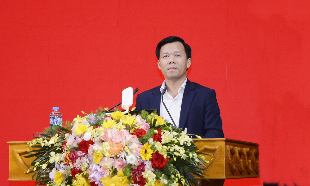Đồng chí Nguyễn Mạnh Hùng, Tỉnh ủy viên, Phó Bí thư Đảng ủy UBND tỉnh phát biểu tại hội nghị. |