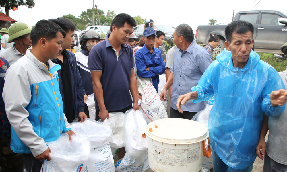Theo ông Trần Đình Căn, Chủ tịch Hội Thuỷ sản tỉnh, trước thiệt hại của nhiều hộ nuôi thủy sản, Hội đã phát động và nhận được sự chung tay của Công ty cổ phần Sông Thiên Đức trao tặng cá giống, thuốc thú y tại các xã Tiên Lục, Ngọc Thiện và phường Đa Mai với tổng số 10 tấn cá giống gồm: Trắm, trôi, mè, chép và các loại thuốc thú y, hoá chất khử trùng tiêu độc môi trường nguồn nước.