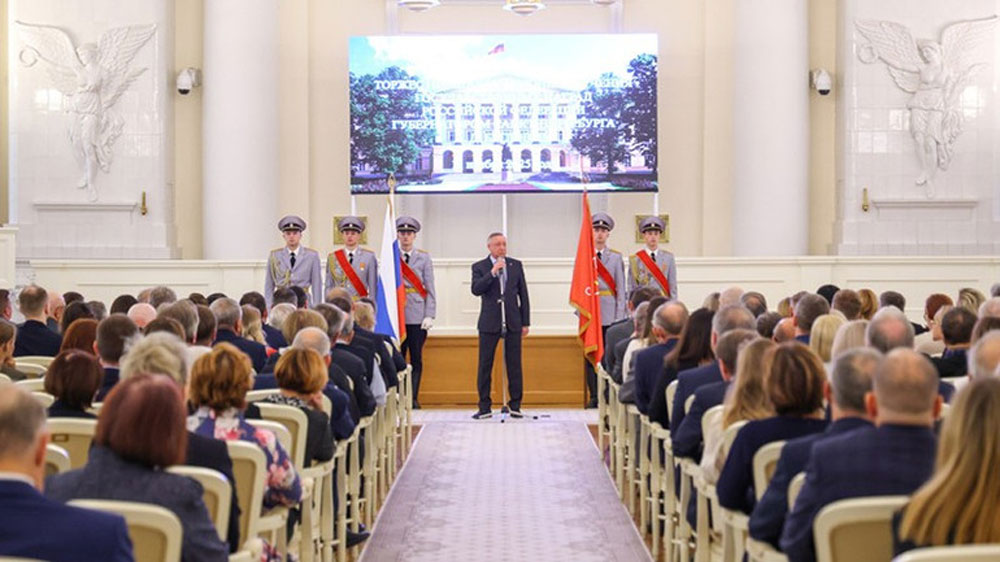 Ông Alexander Beglov, Thống đốc Saint Petersburg phát biểu trong lễ trao tặng phần thưởng quốc gia Liên bang Nga. |