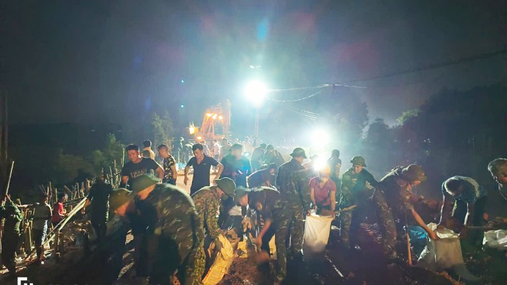 Hàng trăm người dân địa phương đã nhanh chóng có mặt tập trung xử lý sự cố. Nhờ có lực lượng ứng trực sẵn sàng, vật tư, phương tiện, thiết bị và áp dụng đồng bộ các biện pháp kỹ thuật nên sự cố đã nhanh chóng được khắc phục. Đến 23 giờ cùng ngày, tình hình đã được kiểm soát. Lực lượng chức năng cùng người dân tiếp tục ứng trực xuyên đêm, bảo vệ an toàn tuyệt đối cho tuyến đê.