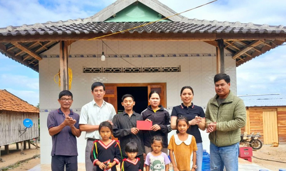 Bàn giao nhà Đại đoàn kết cho gia đình hộ nghèo ở buôn Khăm, xã Suối Trai, tỉnh Đắk Lắk. |