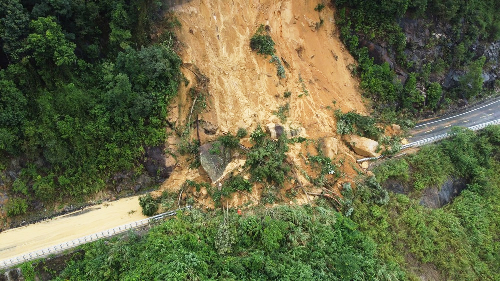 Vị trí đèo Khánh Lê đoạn qua địa phận tỉnh Khánh Hòa bị sạt lở nghiêm trọng. |