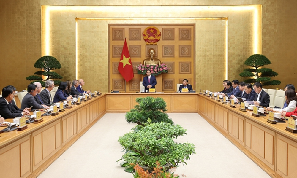 Chiều tối 6/11, tại Trụ sở Chính phủ, Thủ tướng Chính phủ Phạm Minh Chính làm việc với Đoàn lãnh đạo hiệp hội và các doanh nghiệp trong lĩnh vực bán dẫn thuộc Hiệp hội Bán dẫn Toàn cầu (SEMI) đang thăm, làm việc tại Việt Nam và dự Triển lãm quốc tế về bán dẫn (SEMI Expo) Việt Nam năm 2025.