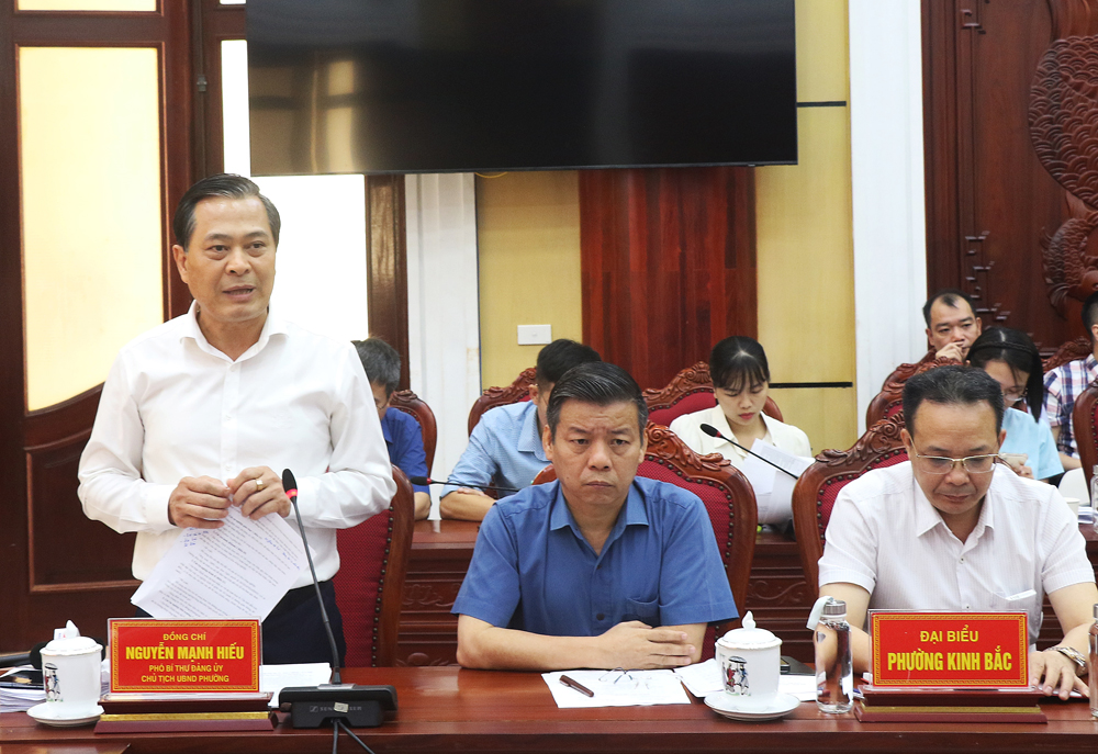 Lãnh đạo UBND phường Kinh Bắc phát biểu tại buổi làm việc. |