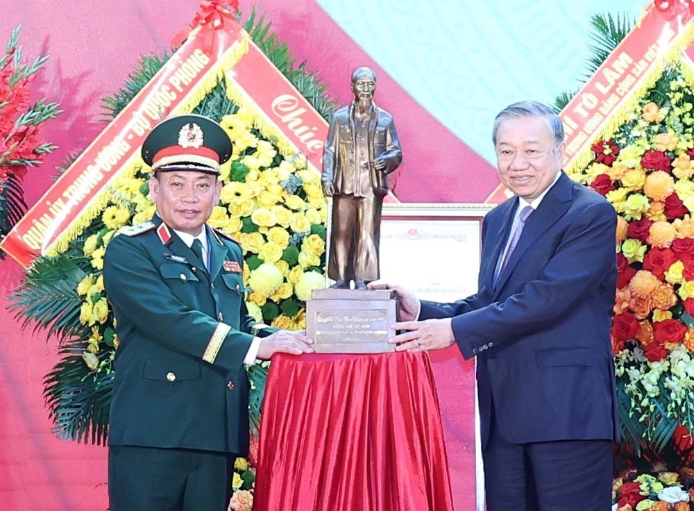 Tổng Bí thư Tô Lâm tặng bức tượng Chủ tịch Hồ Chí Minh cho Tổng cục II, Bộ Quốc phòng. |