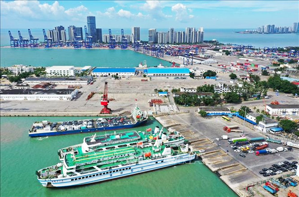 Tàu thuyền neo đậu tránh bão tại cảng ở Hải Khẩu, tỉnh Hải Nam (Trung Quốc). |