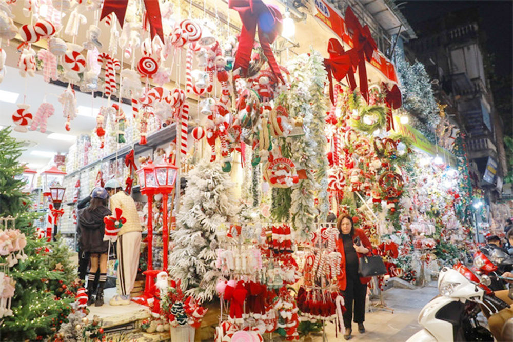 Phố Hàng Mã (phường Hoàn Kiếm) lung linh sắc màu không khí Giáng sinh. |