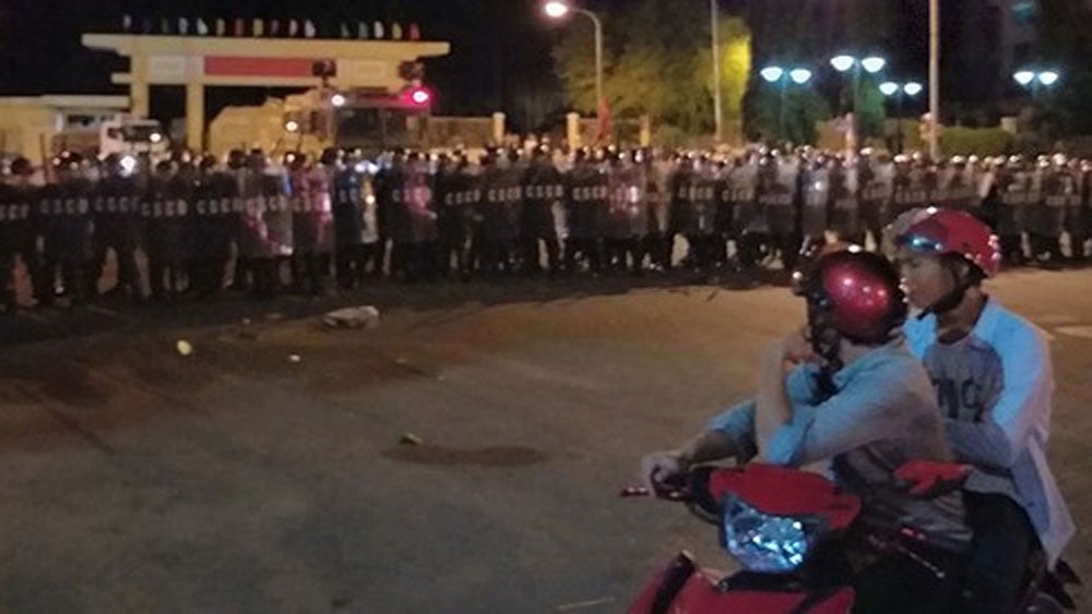 Tuy nhiên, 2 bị cáo Tấn và Thanh cùng những người tham gia không chấp hành mà còn quá khích, có hành vi dùng gậy, gạch đá, bom xăng tự chế tấn công lực lượng cảnh sát cơ động đang làm nhiệm vụ.