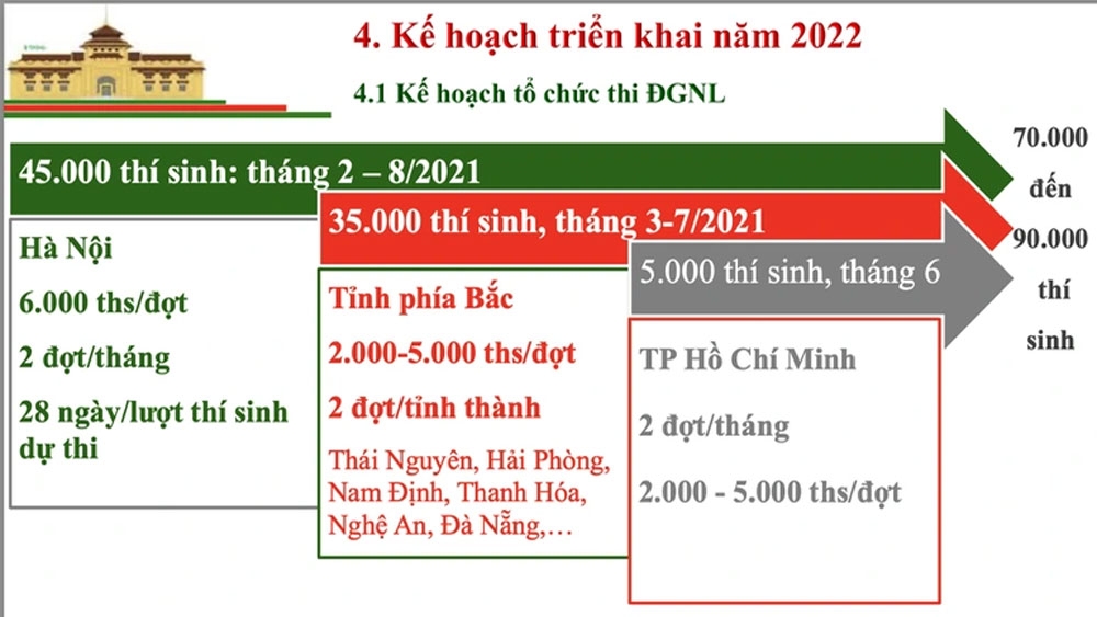Năm 2022, tùy theo diễn biến của dịch bệnh, Đại học Quốc gia Hà Nội dự kiến tổ chức kỳ thi đánh giá năng lực từ tháng 2 đến tháng 8 ở TP Hà Nội và các tỉnh Nam Định, Thái Nguyên.