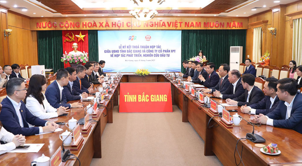 Sau khi trao đổi, UBND tỉnh Bắc Giang và Công ty cổ phần FPT thống nhất ký kết Bản ghi nhớ nhằm tăng cường sự hợp tác để phát triển, nghiên cứu đầu tư trên cơ sở những quy định có liên quan của pháp luật Việt Nam như: Thúc đẩy phát triển công nghiệp bán dẫn; nâng cao chất lượng nguồn nhân lực; phát triển khoa học, công nghệ, giáo dục, đào tạo; đổi mới sáng tạo và chuyển đổi số; nâng cao chất lượng dịch vụ và điều kiện sống cho người dân, nhà đầu tư, doanh nghiệp.