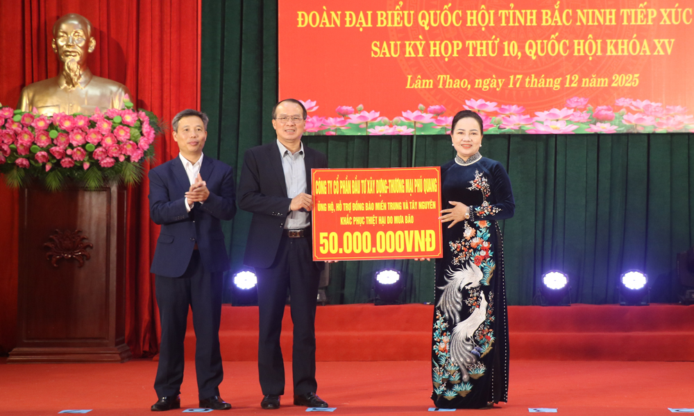 Cũng tại chương trình, phát huy tinh thần “lá lành đùm lá rách”, Công ty Cổ phần Đầu tư xây dựng - Thương mại Phú Quang đã trao tặng 50 triệu đồng hỗ trợ đồng bào bị lũ lụt tại miền Trung và Tây Nguyên, giúp người dân vượt qua khó khăn, ổn định cuộc sống.
