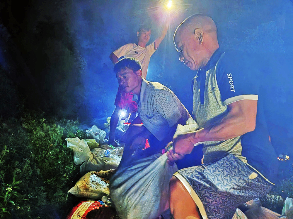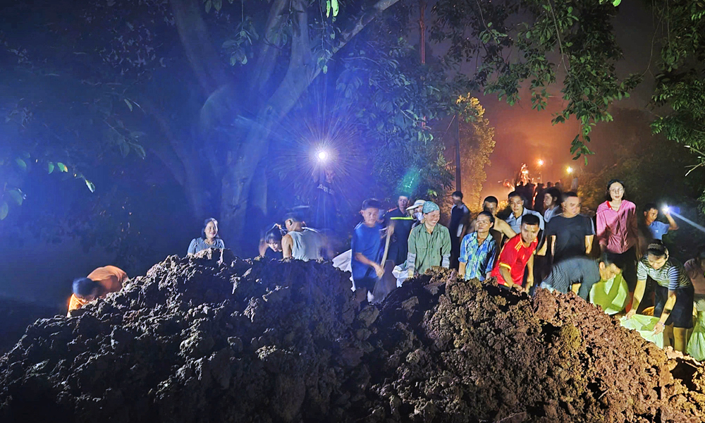Nắm được tình hình, hàng trăm người dân từ các thôn Chi Lễ, Làng Phúc Mãn, Hoa, Vườn, Lẻ… đã nhanh chóng có mặt, mang theo cuốc, xẻng, bao tải, tre, đất và cả máy móc để tập trung xử lý sự cố. Trong đêm tối, mỗi người một việc, người xúc đất, người chở đất, người đóng bao, đóng cọc tre, vận hành máy cẩu… với mong muốn ngăn nước, giữ đê, bảo vệ cuộc sống của bà con.