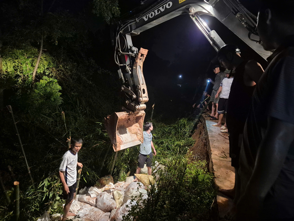 Trước tình hình cấp bách, xã Mỹ Thái và thôn Đức Thọ thông báo khẩn, yêu cầu người dân trong vùng nguy hiểm di dời đến nơi an toàn, đồng thời huy động toàn bộ lực lượng tại chỗ cùng Nhân dân các thôn lân cận khẩn trương khắc phục sự cố.