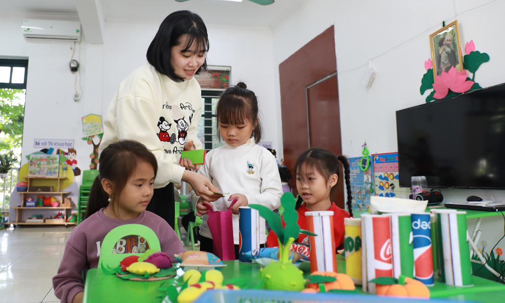 Một giờ học của cô và trò Trường Mầm non Mỹ Thái. |