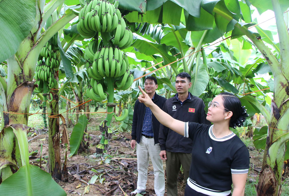 Từ chuyển đổi nhận thức đến hành động cụ thể, người dân địa phương cũng bắt đầu “số hóa” trong sản xuất, kinh doanh. Tiêu biểu như gia đình chị Nông Thị Chi hiện trồng hơn 3 vạn cây chuối tiêu. Để nâng cao hiệu quả canh tác, gia đình lắp hệ thống tưới nước tự động, dùng thiết bị bay không người lái phun thuốc phòng trừ sâu bệnh cho cây trồng; thường xuyên cập nhật hình ảnh vườn chuối lên mạng xã hội để quảng bá, kết nối tiêu thụ. Năm 2024, sau khi trừ chi phí, thu nhập từ bán chuối (quả, lá) đạt hơn 3 tỷ đồng.