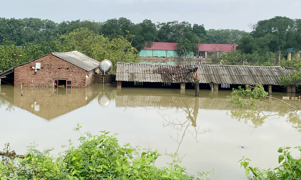 Vẫn còn nhiều nhà dân tại Tam Giang ngập sâu trong nước. |