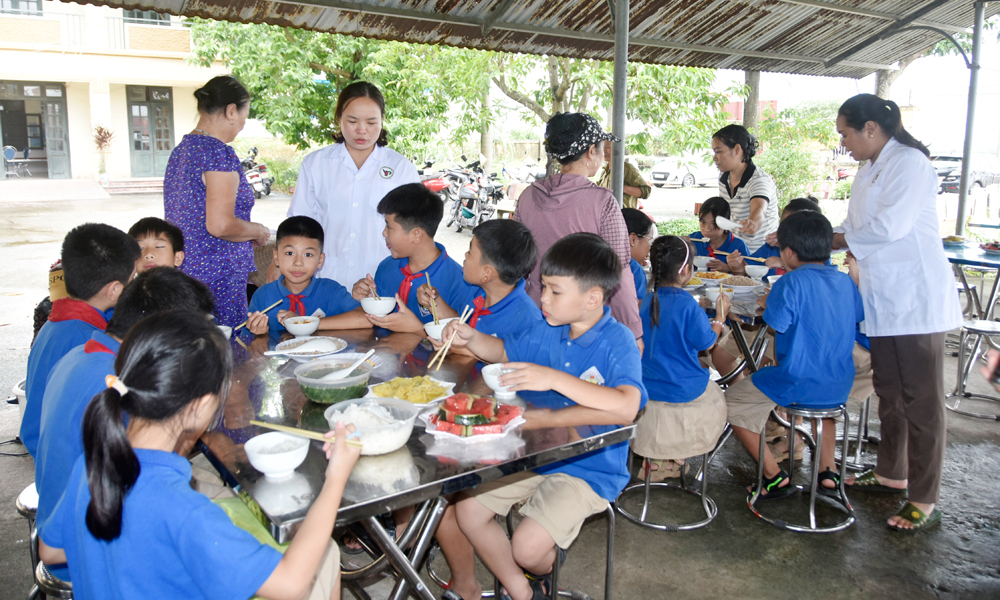 Bữa ăn cho các học sinh chưa thể về nhà do ngập lụt. |
