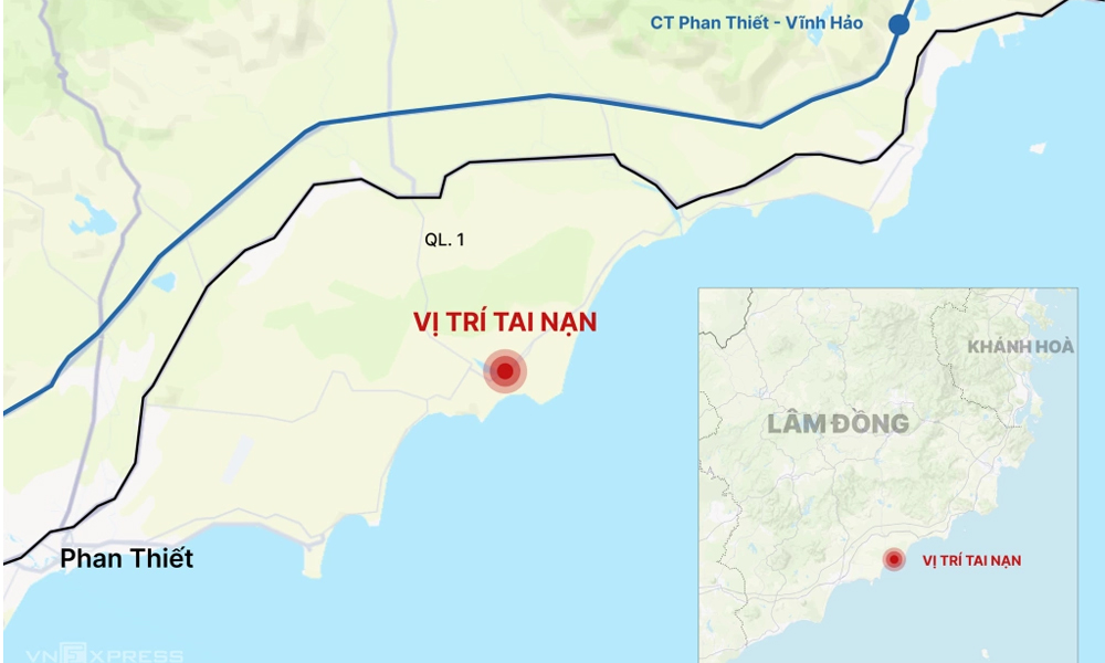 Khoảng 15h30, ôtô biển số Bình Thuận chở 16 người chạy trên đường Hòa Thắng, hướng từ Mũi Né về Phan Rí. Khi đến khu vực ngã ba Hòa Thắng (xã Hòa Thắng, Bình Thuận cũ), xe bất ngờ lao qua lề, rơi xuống vực sâu khoảng 10 m, gần hồ Bàu Trắng. Tại hiện trường, ôtô biến dạng, vỡ nhiều mảnh.